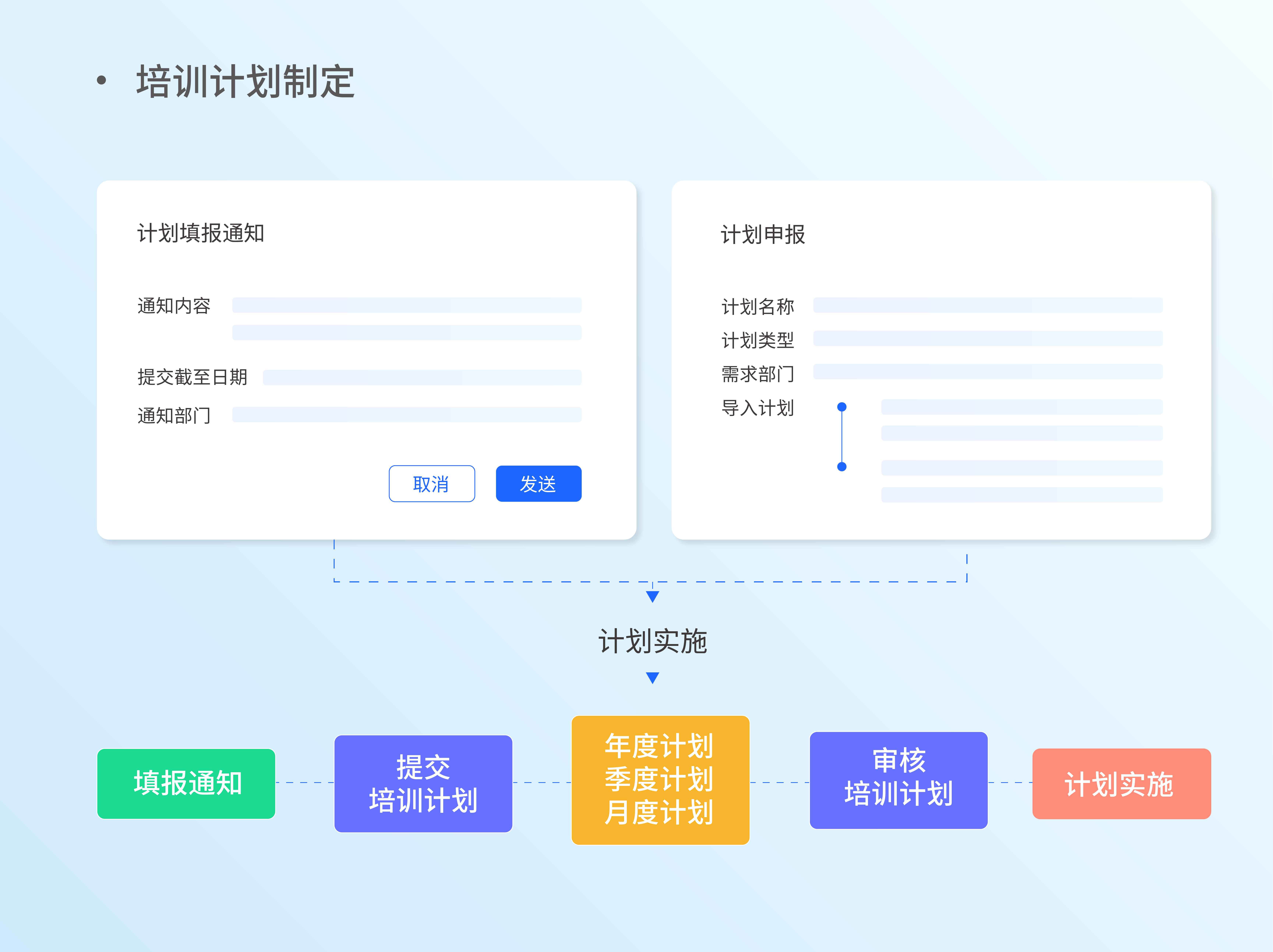 2、建立系统性培训计划: 需建立不同岗位序列(如技术、销售、管理)及不同项目节点的针对性培训计划,实现个性化学习。