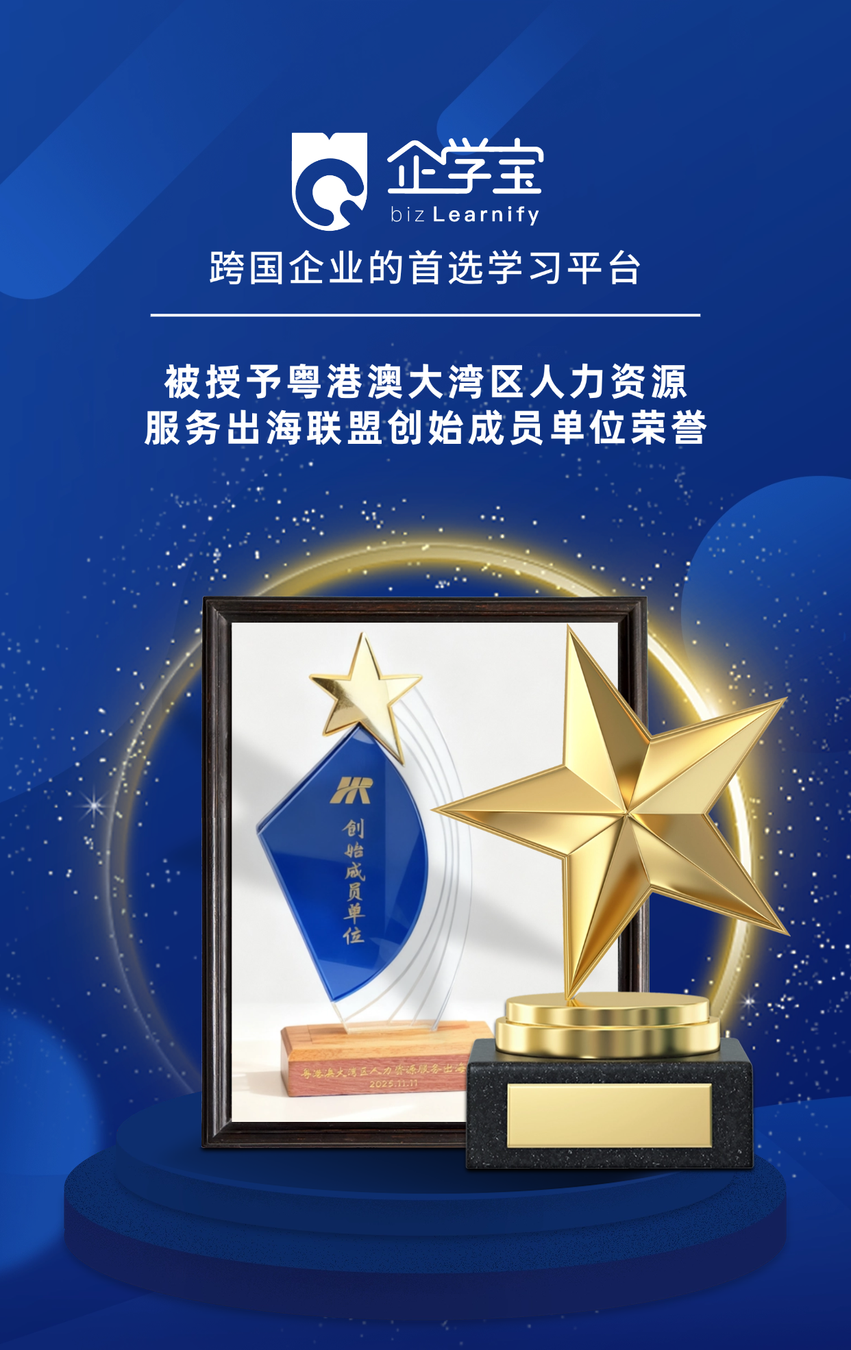 【学友科技·企学宝】作为“企业培训数智化学习平台”中唯一入选的产品供应商,正式获授“粤港澳大湾区人力资源服务出海联盟创始成员单位”荣誉。
