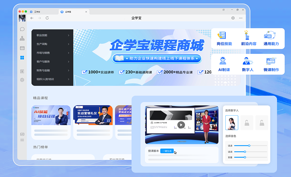 云学堂企业微信端培训平台专为企业打造高效便捷的在线学习体验,通过整合企业微信的即时通讯功能,实现员工随时随地参与培训。平台提供丰富的课程资源和灵活的学习路径,支持多种课程形式