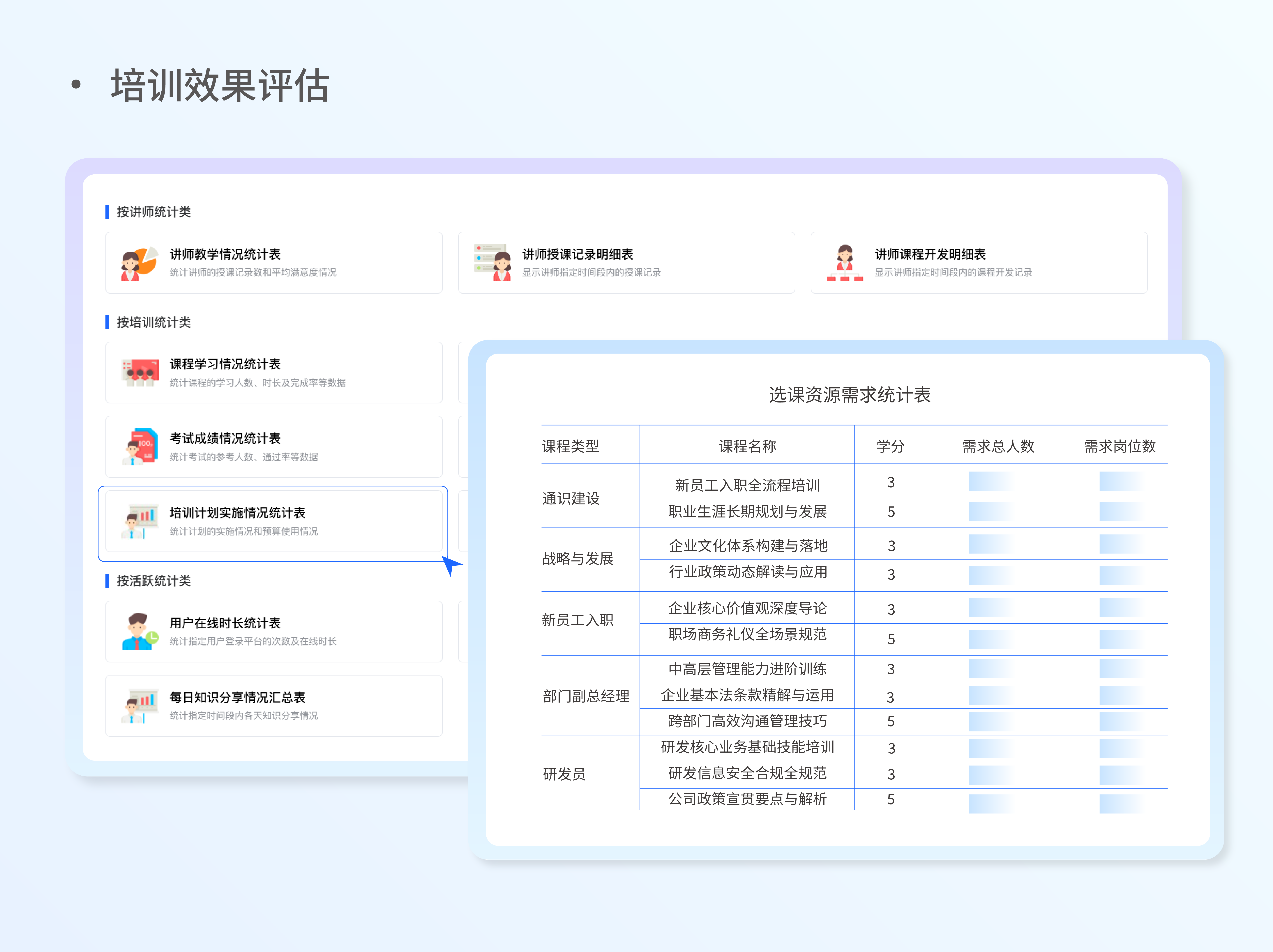 进度可视化:学员可实时查看学分进度和课程完成进度,管理员可汇总统计各个学员计划的完成情况,保障培训有序推进。