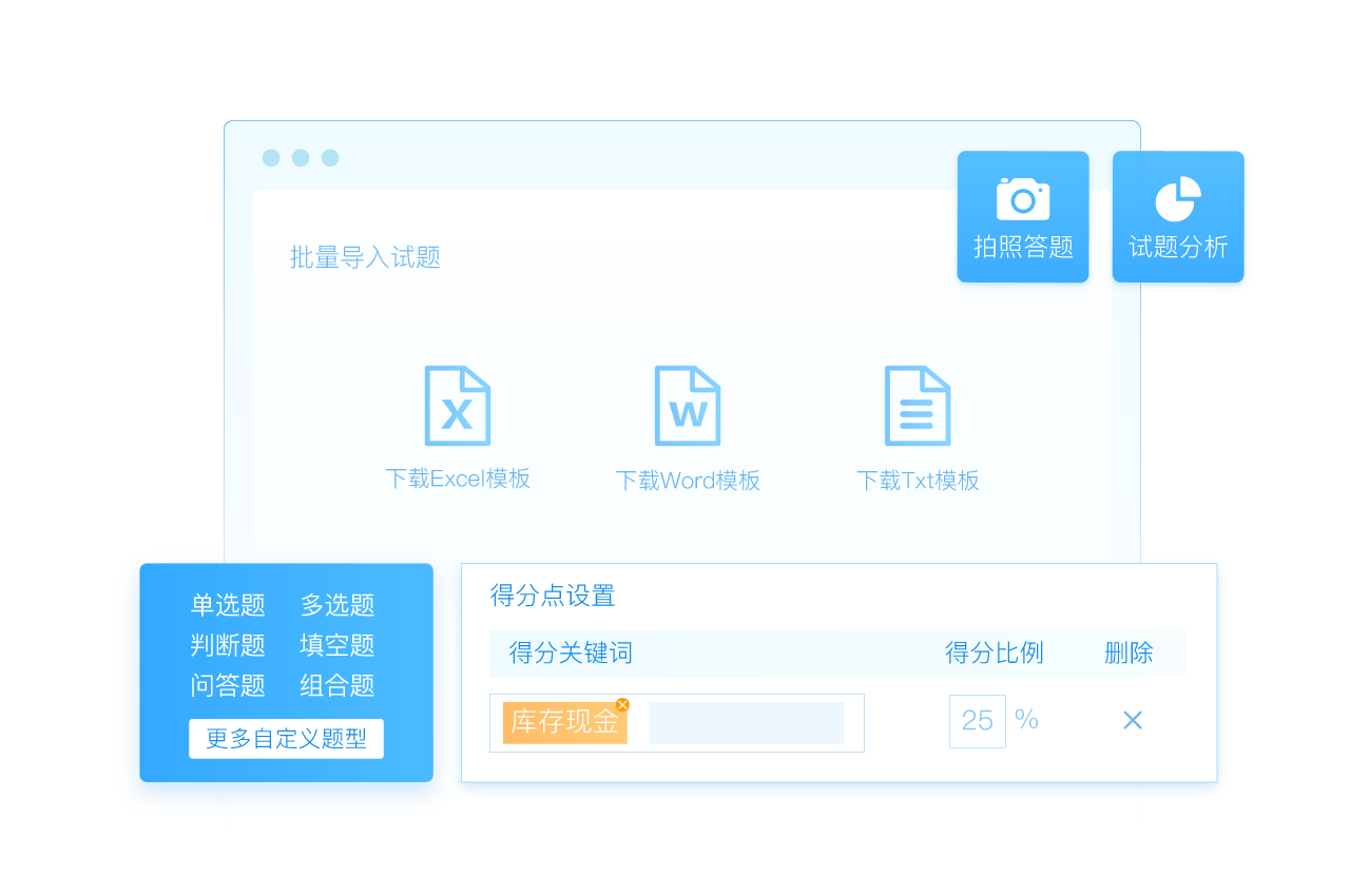 场景适配:主要适配高校日常小测、课程结业考核、中小企业入职测评等灵活场景。