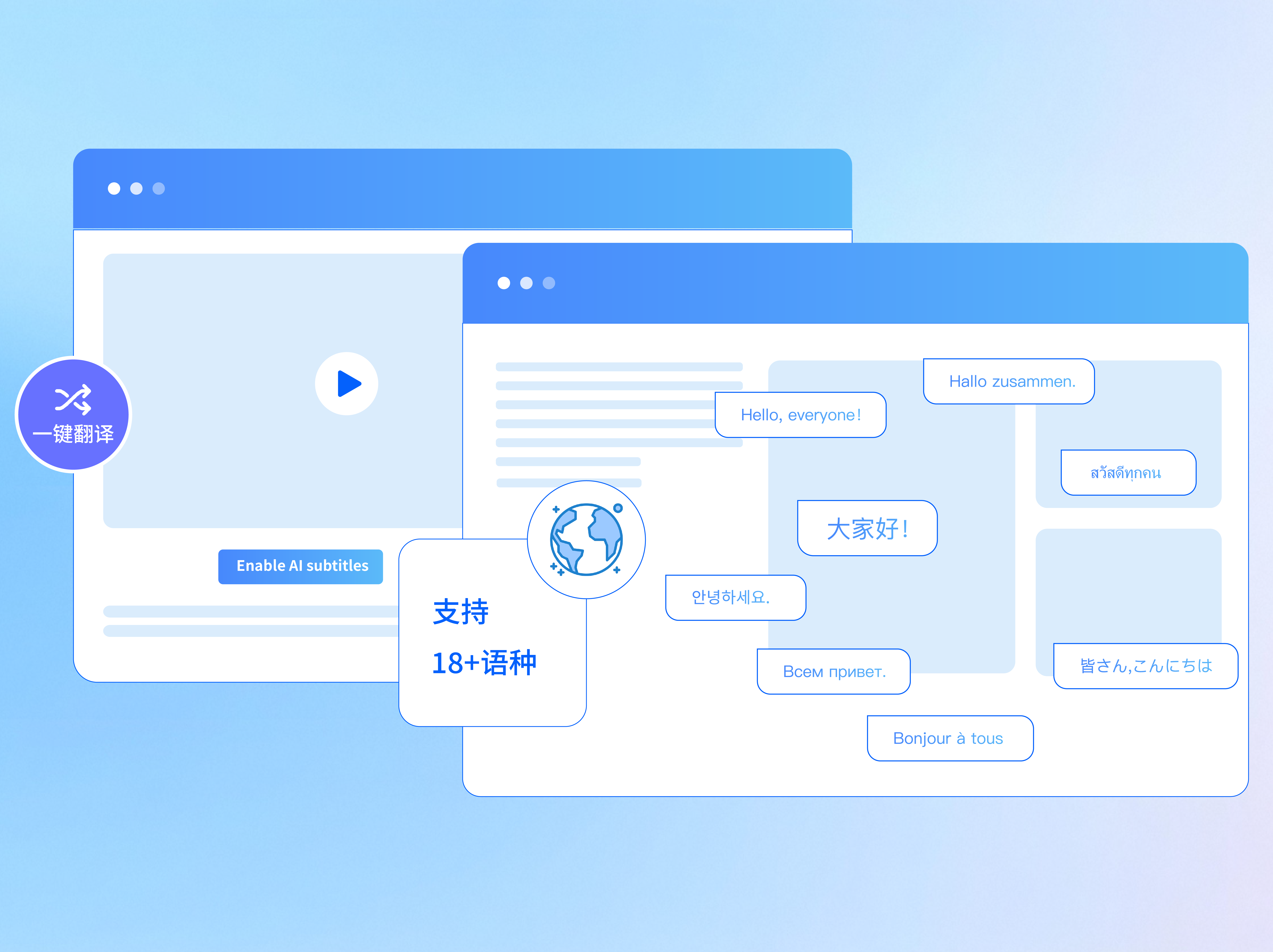 (1)多语界面与AI字幕:界面支持18+种主流语言的设置,覆盖中、英、俄、泰、越南、西班牙等,并支持多形式内容一键转换与多语种字幕生成,翻译准确率超90%。