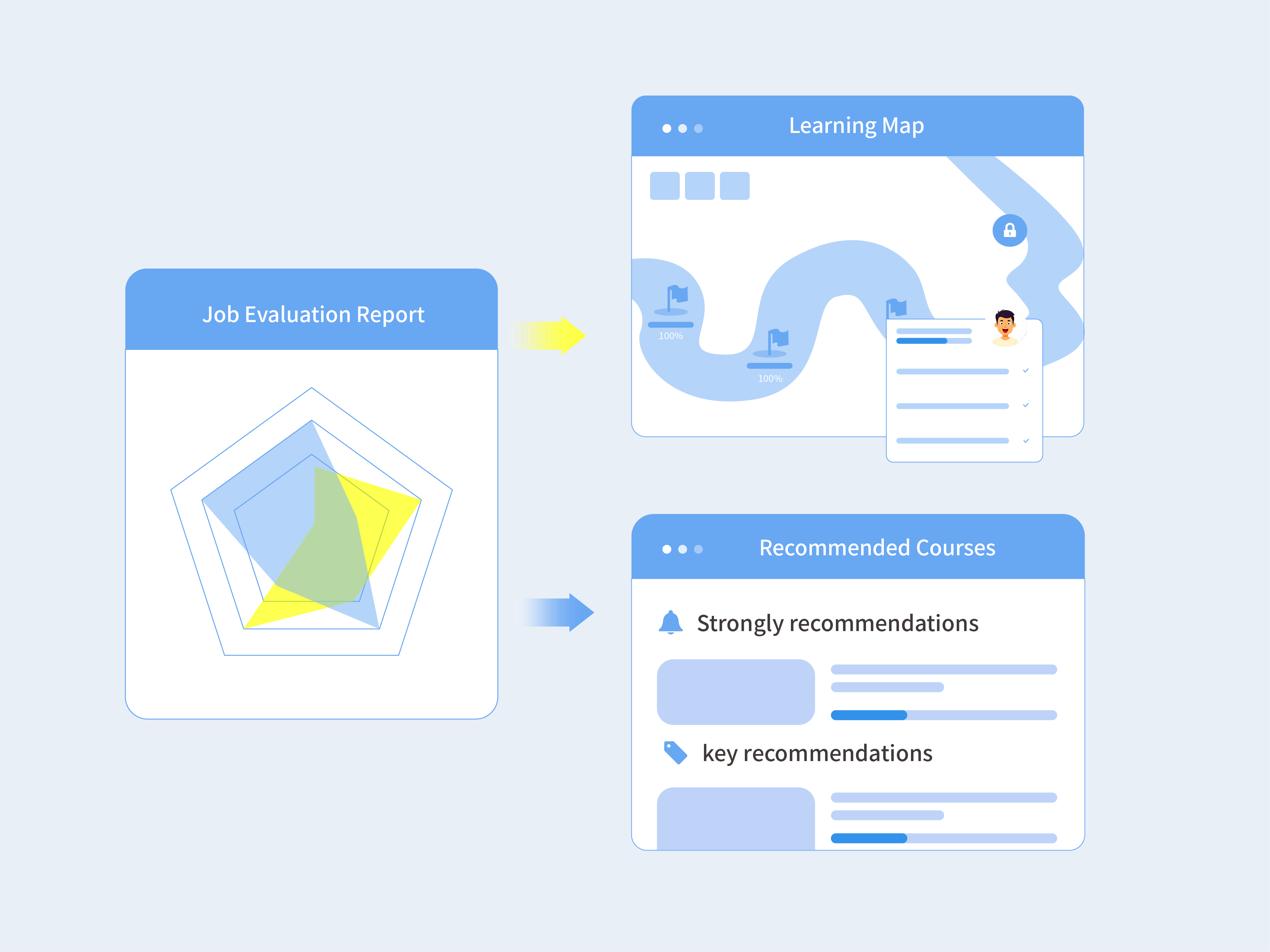 大型集团业务板块多元、全球布局广泛,不同国家、不同职级、不同岗位的员工在知识储备、技能要求、成长节奏上存在显著差异。企学宝依托岗位技能矩阵,可结构化梳理各岗位核心能力要求,形成可视化技能画像,精准定位员工能力短板;并基于此为不同区域、不同岗位员工定制专属学习地图,明确从入门到精通的全周期成长路径,员工完成前一阶段学习后系统自动解锁下一阶段内容,保障学习的连贯性与系统性。同时结合AI智能推荐算法,动态适配员工学习进度与能力提升需求,让培训内容、课程推荐与岗位要求、属地业务场景高度对齐,高效打造精准适配的国际化适岗人才,从源头解决集团全球化人才能力不匹配、成长无路径的痛点。