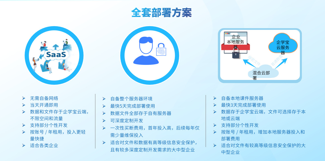 面对企业IT架构多样、升级诉求各异的现实困境,企学宝摒弃“推倒重来”的传统思路,创新性提出H5轻量嵌入与API深度集成双轨并行的融合方案。无论您原有学习平台建于何时、基于何种技术,企学宝都能在不重构、不迁移、不改习惯的前提下,将AI能力无缝植入,让老平台快速拥有智能时代的核心培训能力。