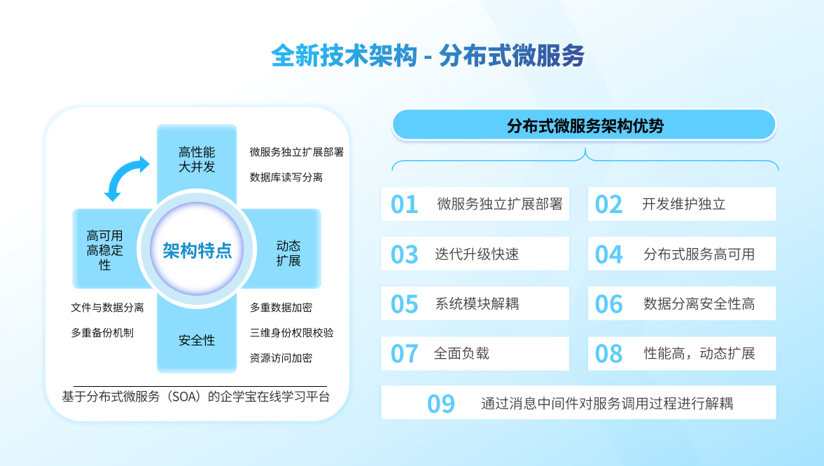 采用分布式微服务架构,轻松支撑万人级甚至十万人级高并发学习场景,保障AI功能模块在大流量下稳定运行、无卡顿。架构具备弹性扩展能力,支持根据业务发展灵活增加功能模块与算力资源,实现系统可持续演进。
