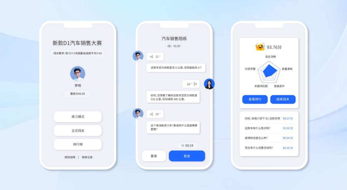 ①销售话术演练:销售新人通过AI智能陪练,针对常见业务场景进行标准话术/流程与复杂②客情模拟演练,如开场白、异议处理、竞品对比、商机推进等,通过反复练习提升实战能力,加速上岗。