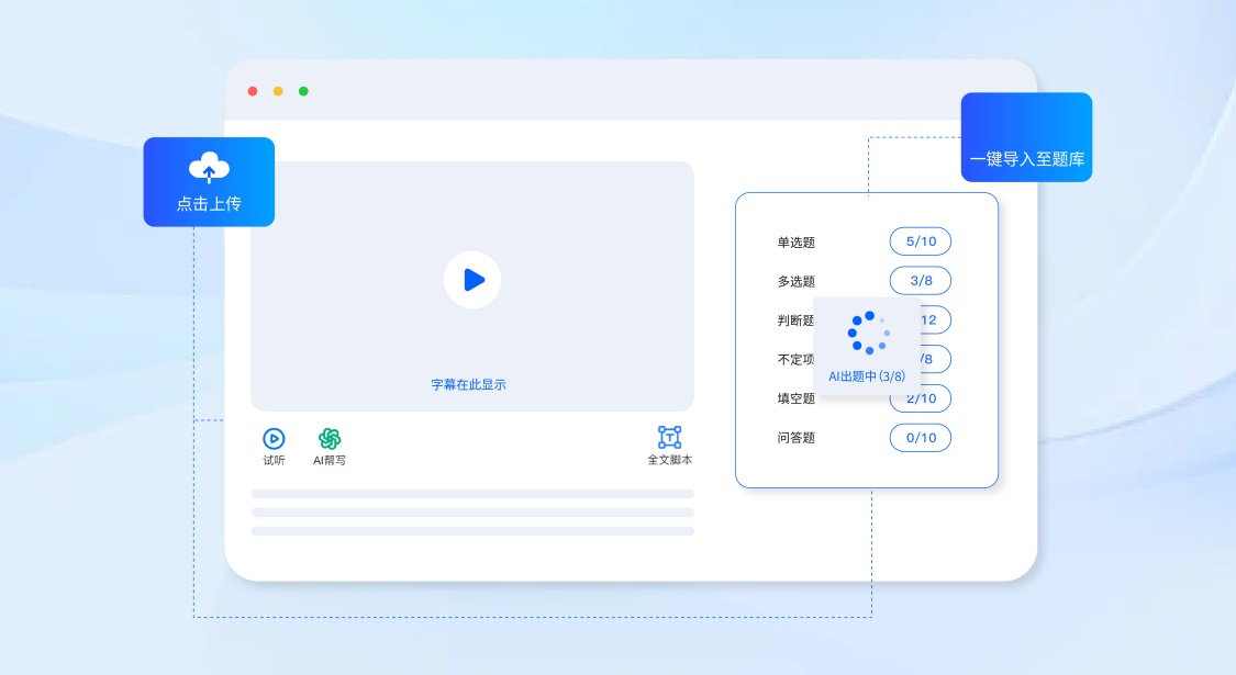 ①学考一体:上传公司技术文档、编码规范、工具教程等基础资料,通过AI制课、AI出题快速生成标准课程与试卷,同时搭配AI识别题目还能批量导入外部试题(支持精准识别代码片段、命令行操作等技术题目),快速构建企业专属培训考核资源包,一键分发新员工学习。