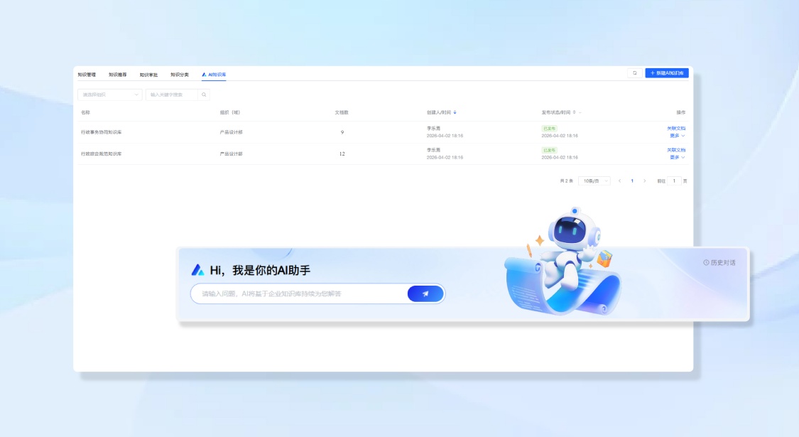 ①建立行政SOP知识库:将行政SOP知识:接待礼仪、会议管理、办公用品、资产管理等上传知识库管理,员工可以自主查阅,降低带教负担。如企学宝的知识库模块不仅实现资源分层、标签管理,还可以搭载AI问答,员工与AI对话提问,便可以随时随地速查标准规范,无需反复问导师。