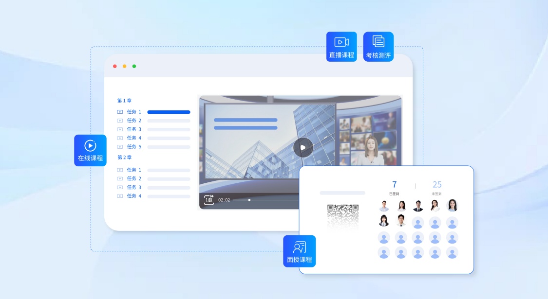 (5)规模化适配:应对企业批量入职、扩张期新员工涌入,轻松实现大规模、多岗位培训统一高效覆盖。
