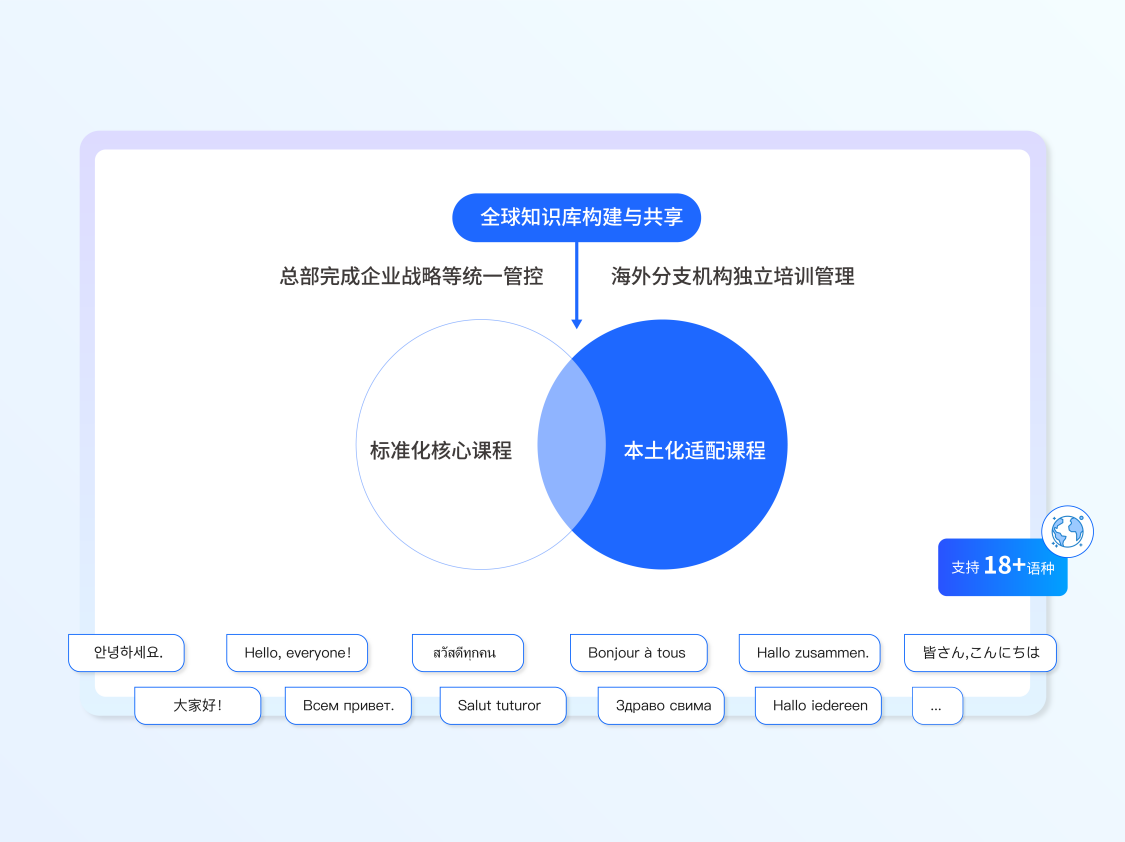 (1)全球化适配,多语言覆盖:支持多语言界面与内容翻译,如企学宝(全球化AI培训学习平台)满足总部统管+区域治理的运营需求,支持18+多语种界面,AI字幕准确率≥90%,适配东南亚、欧洲、拉美等主流市场。