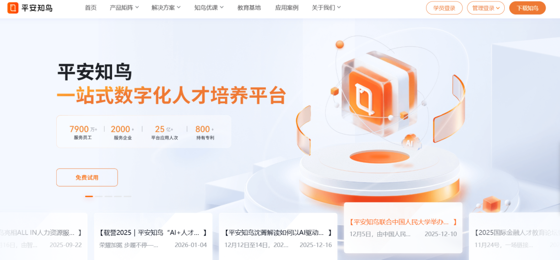 平安集团旗下行业垂直型智能培训平台,依托平安 32 年员工培训经验与金融科技优势,聚焦行业化、实战化、智能化,提供平台+内容+运营一站式智慧企业培训解决方案。
