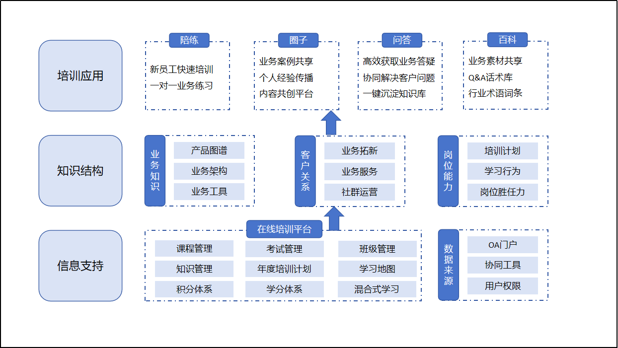 为了便于帮助企业快速理清培训需求,并结构化、系统化地将业务知识转化为员工在业务场景中的实际助力,构建一个全方位的培训体系是非常有必要的。因此,大体而言,可以将这一构建过程分为以下几步: