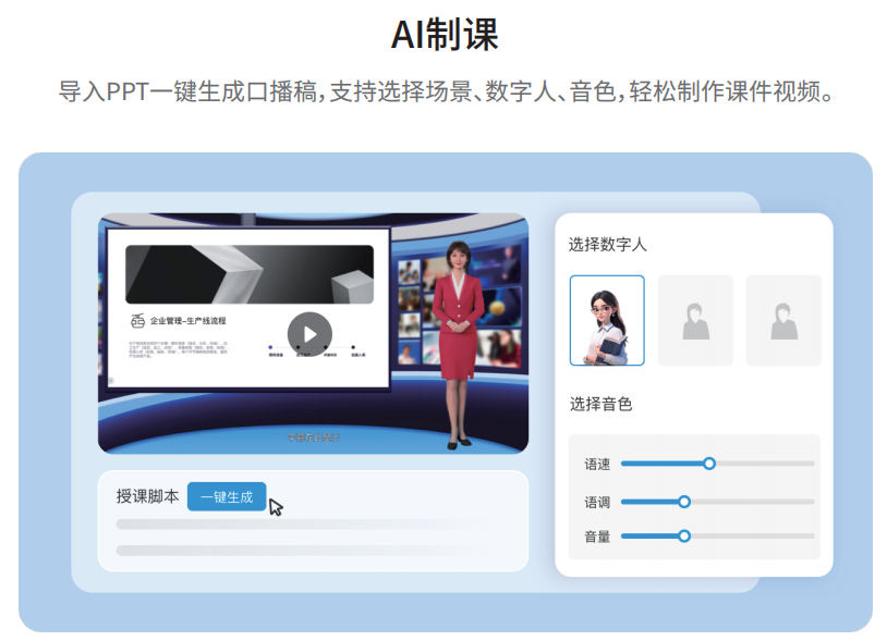 AI制课是借助人工智能技术,实现智能化课程开发的强大功能。它将传统依赖大量人工的课程策划、内容生成和课件制作环节,转为高效连贯的智能生产流程,降低企培课程开发难度与时耗。作为为企业提供一体化制课解决方案的优质辅助工具,具备以下核心功能: